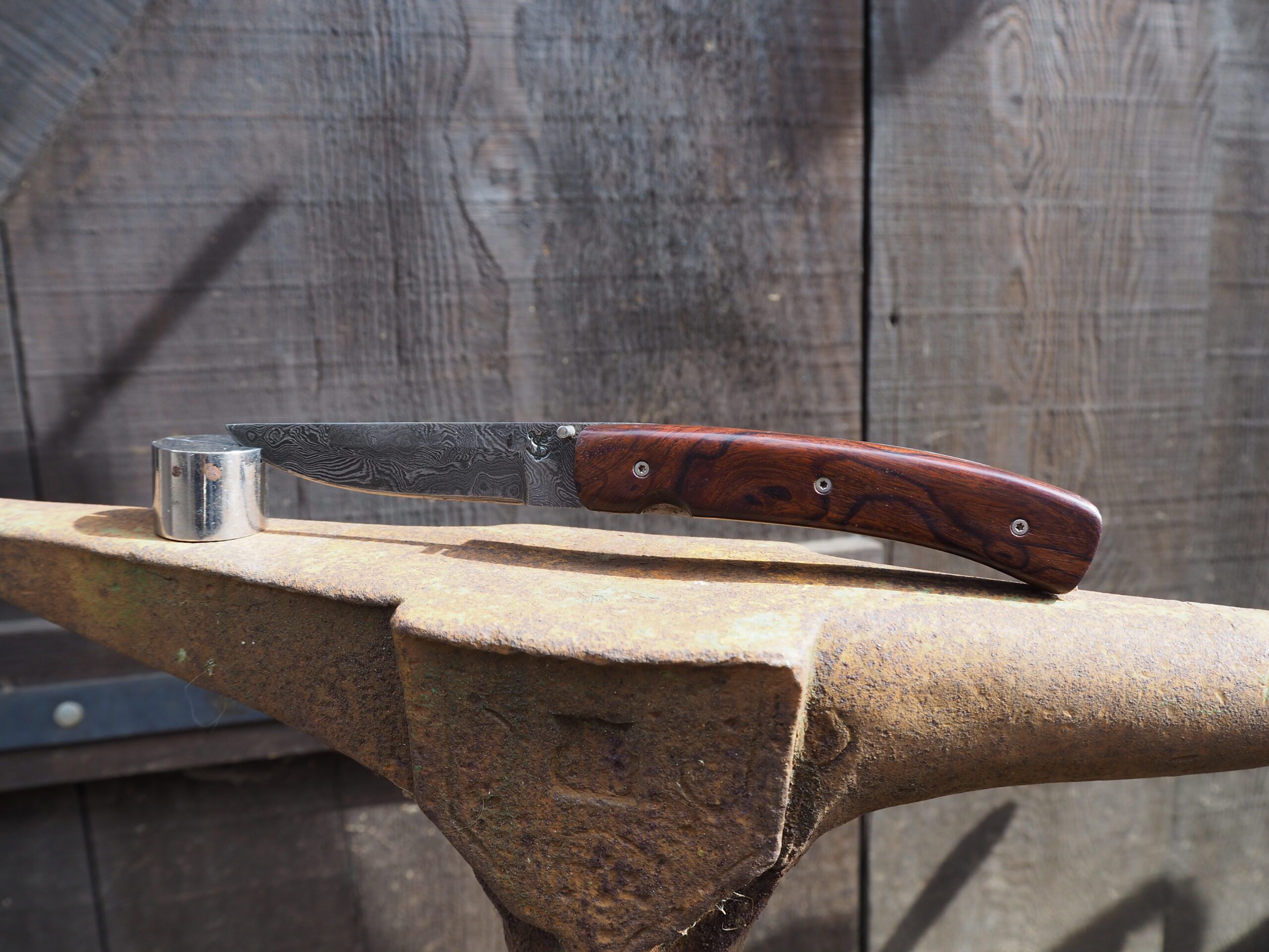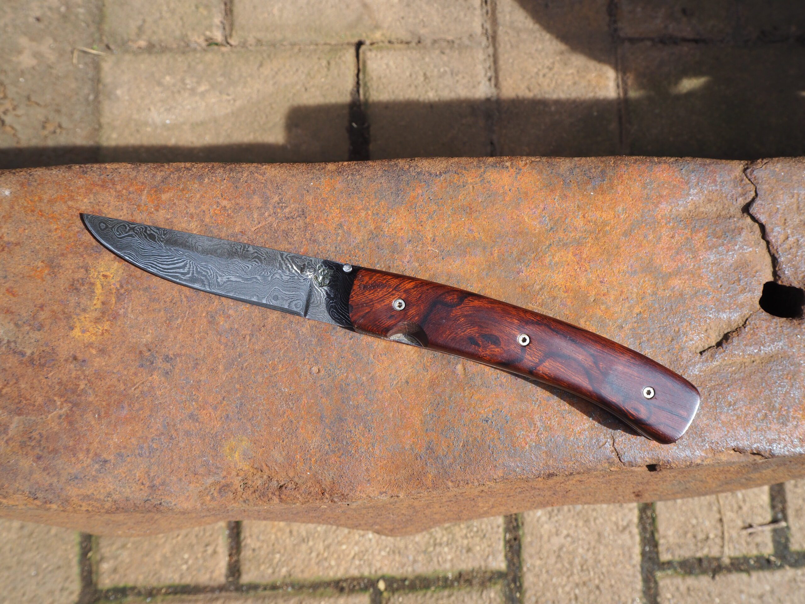 Couteau pliant en damas 240 couches, et manche en bois de fer d’arizona