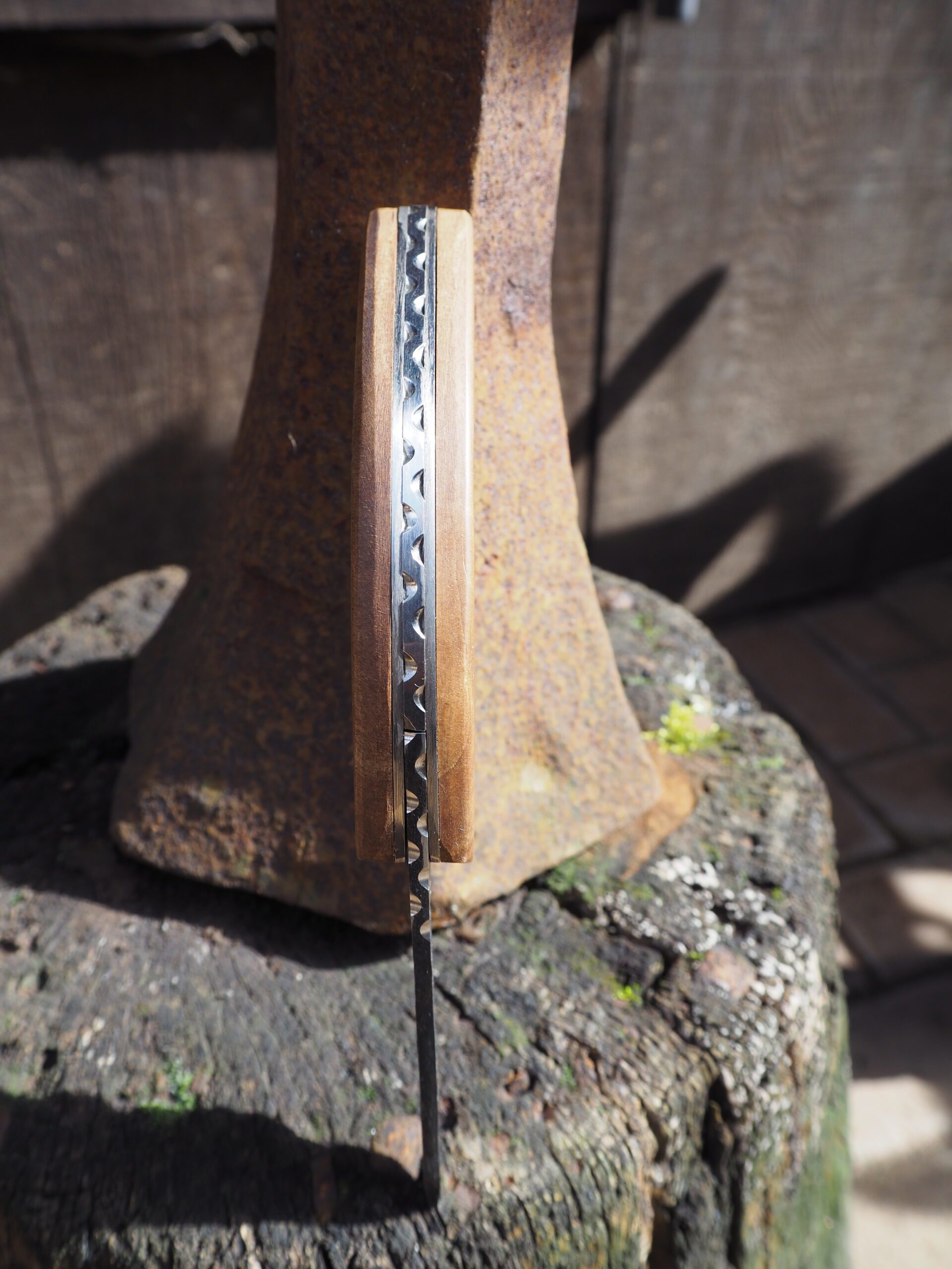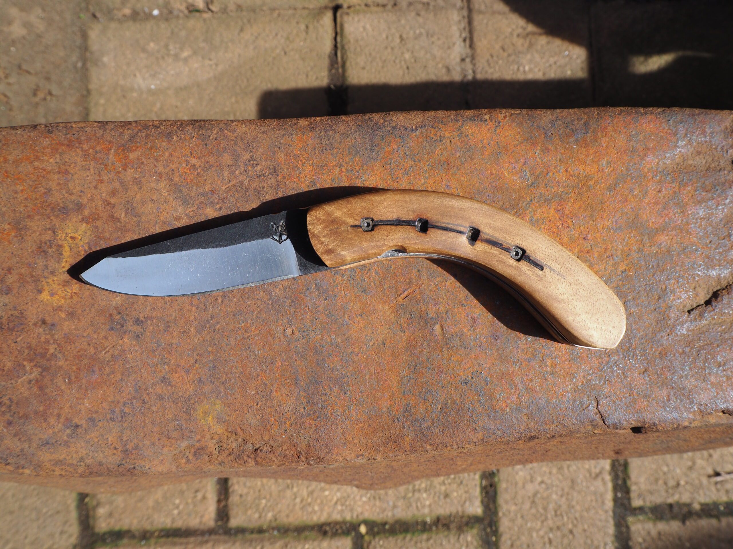 Petit couteau pliant en acier carbone brut de forge et manche en ziricotte